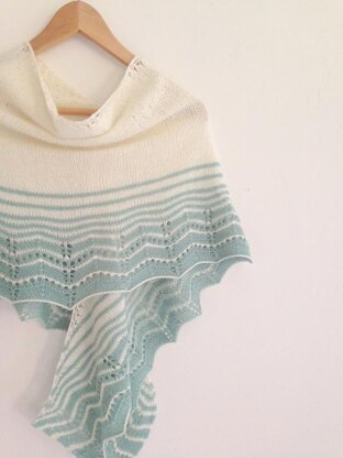 A wrap is a mighty handy thing to have these days, especially if it's light, soft and airy and worked in the pale, promising colors of spring. It's perfect for tossing around shoulders in a chilly restaurant or outdoors inside or outside of your jacket. I've had a thing for chevrons recently. I love their fluid movement and the energy they produce in fabric. They remind me of the exciting geometric patterned textiles of Sonia Delaunay, Orphism, and the reckless time between the wars. Marcelle is a little tamer, a glimpse of that time viewed through a long lens.