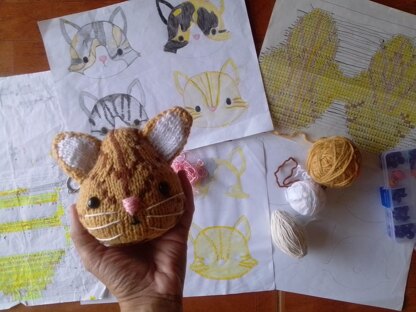 This is a PDF knit pattern, not a finished doll. Marco Cat (Head) is written in English and Spanish. The pattern does not include body pattern. This pattern is an extensive PDF file containing complete instructions for knitting and finishing a cat head