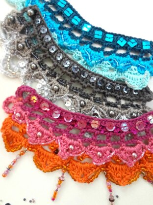- Beads (and/or sequins) in various colors and shapes (maker’s choice). In this tutorial I specify the shape and number of beads used. The beads are applied after the piece is crocheted.