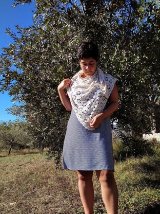 This shawl, named not after a famous drink, but after its repeating daisy pattern (in Spanish Margaritas) very quickly become my beach companion. It is easy to crochet shawl, suitable for beginners, with a repeating pattern of only 4 rows, so you can make it as large as you like.