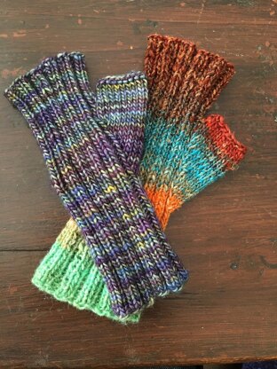 One SizeCircumference: ca 5 (5.5)” / 13 (14) cmLength: ca 7 (8)”/ 18 (20) cm Yarn: (1) 100g hank MECHITA from Malabrigo (ca 385 m ea) = A (1) 50g ball of Silk Garden 4-ply from Noro (150 m ea) = B Needles: US 3 / 3 mm double points Gauges: ca 26 sts / 36 rows = 4” / 10 cm in Stockinette St for Mechita ca 24 sts / 30 rows = 4” / 10 cm in Stockinette St for Silk Garden 4-ply