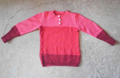 MARIA, made for my grandchild, a beautiful kid jersey with polo-neck or crew neck in DK-weight cotton - here girlish coloures. But also suitable for boys in boyish colours and then the jersey is called MARIO. Coloured in blocks with self-coloured back. Worked flat. The pattern is a simple textured pattern worked from chart. The sleeves are set-in sleeves - long or short. Would also be lovely plain coloured which is suitable to work in rounds.
