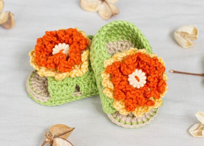 During Summer, there's nothing more enjoyable than adding a fun pop of colour to bub's wardrobe in the form of an adorable pair of sweet little sandals! These Marigold Baby Sandals would be perfect for baby's first summer, first trip to the park as well as her first picnic too!.. Perfect for all the little crawlers out there, these winsome accessories are meant to take you places this summer. Cover up those teeny toes with this pair of floral sandals, and your little one will be wriggling, crawling and toddling all over the place. Easy and speedy to make, these little booties are the best go-to gift for babies and moms-to-be.