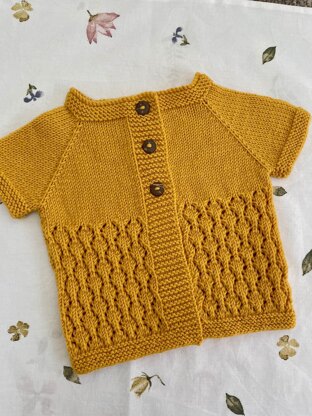 Perfect for the warmer months, Marigold is a sport weight cardigan with a delicate lacy body that’s ideal for topping off t-shirts and summer dresses.