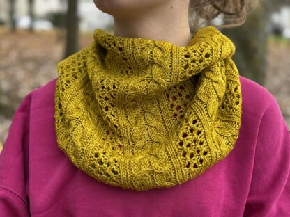 The Marigold Twist Cowl is a cozy, textured accessory that combines soft cables with delicate lace for a beautifully structured finish. Measuring 60 cm in circumference and 30 cm in height, it sits comfortably around the neck while showcasing its elegant stitchwork. Designed as a one-skein project in DK weight merino wool, this cowl is quick, engaging, and an absolute pleasure to knit. Whether you’re looking for a satisfying weekend project or a thoughtful handmade gift, Marigold Twist brings warmth, texture, and a touch of golden charm to any wardrobe.