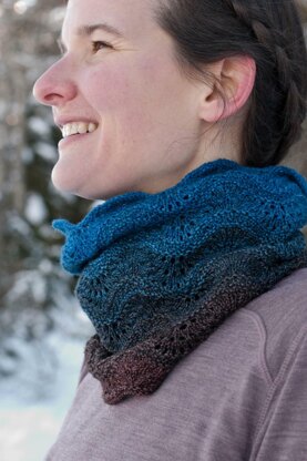 The combination of the wave lace stitch with our Gaia Crescendo gradient set creates an effect reminiscent of the incoming tide in this simple cowl pattern.