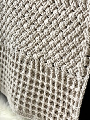 This throw was inspired by freshly snowed on fields and different marks that can be found on such blank canvas, be it regular pattern of shoes soles, car tires or strange and wonderful animal marks. The yarn gives off slight sheen reminiscent of freshly snowed on fields reflecting the morning winter sun.