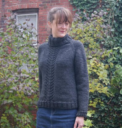 Marram may be worn as a pullover with the buttons in the back or as a cardigan with the buttons in the front. It is knit seamlessly from the top down with raglan shaping, ribbed trims and a pretty knit and purl pattern down the center. The collar and buttonbands are picked up and worked in rib. Knit in lovely Puffin from Quince and Co., it works up very quickly.