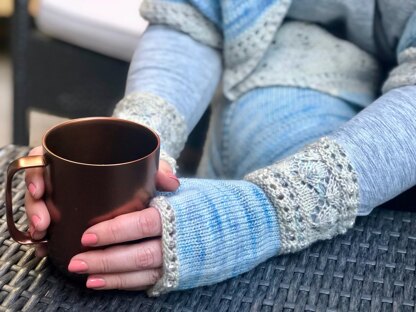 Marsali is a lacy and romantic little pair of fingerless mitts that use a small amount of yarn, making them perfect for shawl leftovers! I was inspired to design these to match the Drums of Autumn Shawl, so of course, I had to name them after one of my favorite Outlander characters, Marsali. The second sample uses the leftovers from the Ripple Effect Shawl - I cannot even explain how much I love matching fingerless mitts to shawls!