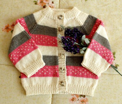 Pattern InfoMarshmallow Baby Cardigan is a classic stripes and polkadots raglan cardigans, pattern include many sizes, is easy knitting, great for all knitting beginners