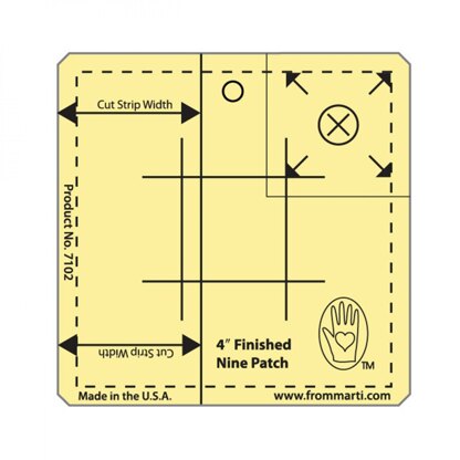 Make 4-inch finished Nine Patch blocks with this ruler! What could be easier than making Nine Patch blocks? Making Nine Patch blocks with From Marti Michell Nine Patch Rulers! Available in 7 different sizes. These innovative rulers improve on strip techniques as they guide you in cutting very accurate strip widths. (What size strip would you cut for a 5" finished Nine Patch? No need to know, we did the math!) Next, you get perfect “second strip” cuts and can use the tool itself to confirm exact finished block size. Fussy cut single squares or block size squares, too. Deeply etched amber acrylic.
