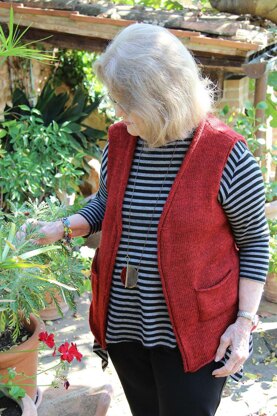 Skill level easy Size XS (S, M, L, 1X, 2X, 3X). Sample knit is size L. Instructions are given for smallest size, with larger sizes in parentheses. When only one number is listed, it applies to all sizes. Finished MeasurementsChest at underarm 32.25 (36, 40.75, 44.25, 48, 52.5, 56.25)” Finished Length 20.75 (21.75, 22.75, 23.75, 24.75, 25.75, 26.75)” Armhole 7 (7.5, 8, 8.5, 9, 9.5, 10)”