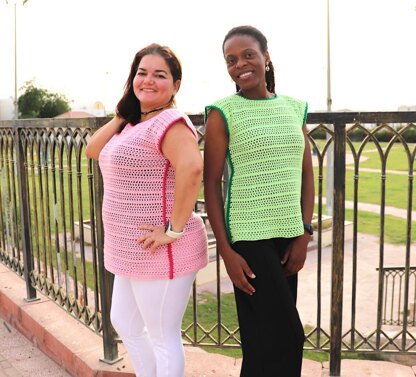 This crochet top is easy to make, a lovely garment for summer and other seasons. With the light and dark colour combinations you can match your favourite colours to make one, or you can use just one colour throughout. The pattern also has a video tutorial on Yarn Craftee youtube channel for further guide on how to join the sides; please be sure to check that.