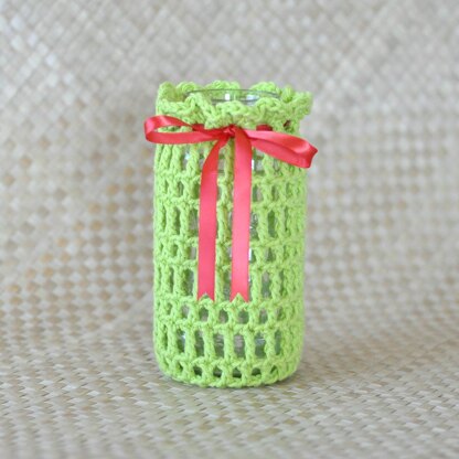 I originally designed this pattern for a Welcome Luncheon. We were using large Mason Jars to hold flowers at the table centers, but they looked too plain for my liking. I made a total of 10 and only 2 found their way back home with me! I was happy to hear that the Guest of Honor managed to snag a pair for herself, as well!