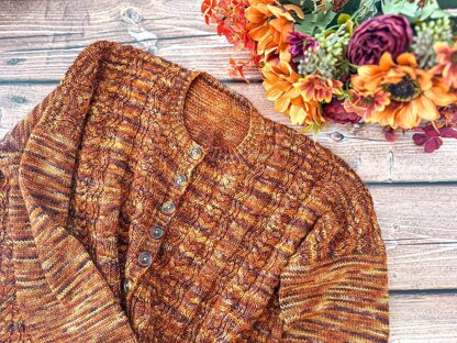 Yarn : This cardigan is knit with a fingering weight yarn (Sock super fine from Bulbe Bizarre in Market Spice colorway).