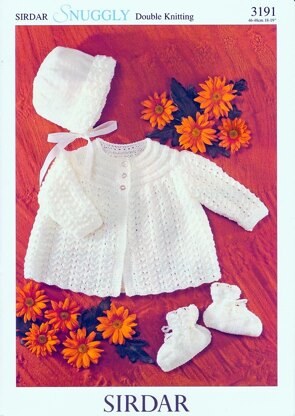 Matinee Coat, Bonnet and Bootees in Sirdar Snuggly DK - 3191 is a Knitting pattern by Sirdar Snuggly, available as a Leaflet and includes instructions in English. Super fun to make, this pattern could be your next masterpiece!