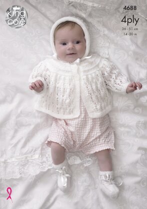 Matinee Coat, Cardigan, Bonnet & Bootees in King Cole 4Ply & DK - 4688 - Downloadable PDF