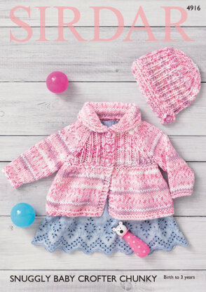 Matinee Jacket & Bonnet in Sirdar Snuggly Baby Crofter Chunky - 4916 - Downloadable PDF is a Intermediate Knitting pattern by Sirdar, available as a Downloadable PDF and includes instructions in English. Super fun to make, this pattern could be your next masterpiece!