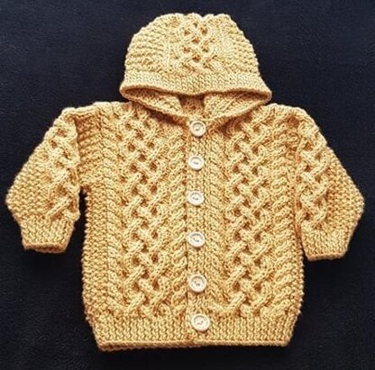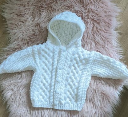 This pattern contains instructions for a Hoodie to fit 18″ – 28″ chest and the end product is larger as it is a coat. The finished chest sizes are 2 sizes bigger to allow for clothing underneath so 22″ – 32″. I cannot stress enough to measure the child you are knitting for as all children are different. By adjusting length of arms and body it would easily fit older children. Going by traditional sizing it states this would fit up to 8 years but measure!!!