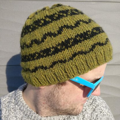 Two simple stranded repeats make this hat a good intro into colorwork.