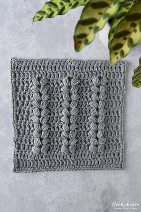 The stack of squares for the Year of Squares Blanket is growing! This month we will be making a square with puff stitches. Read more about the Year of Squares Blanket Crochet Along on the Hobbydingen website.