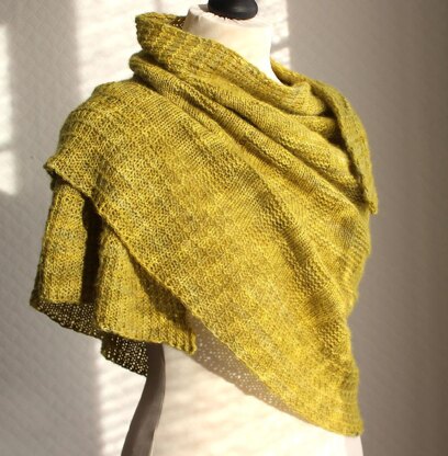 A comforting & cosy shawl that sits particularly well across the shoulders due to the pronounced crescent shape.