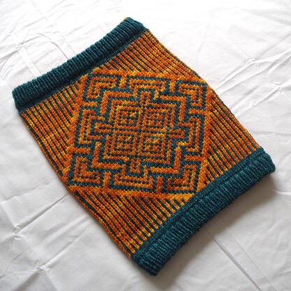 The name 'Mazequare' comes from 'Maze' and 'Square'. Mazequare is a perfect cold-weather cowl. Double brims and warmer and durable stranded colour work fabric protect your neck from bitter cold and freezing wind.