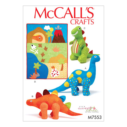 McCall's Dinosaur Plush Toys and Appliquéd Quilt M7553 - Paper Pattern Size One Size Only is a Sewing pattern by McCall's, available as a Paper Pattern and includes instructions in English, Spanish. Super fun to make, this pattern could be your next masterpiece!