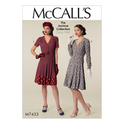 McCall's Misses' Inverted Notch-Collar Shirtdresses and Belt M7433 - Sewing Pattern