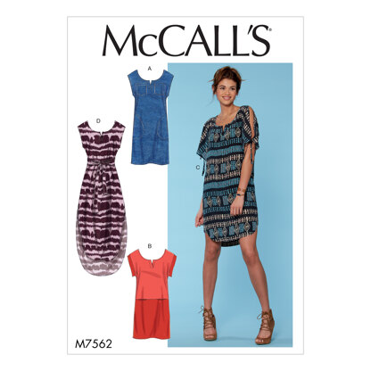 McCall's Misses' Pullover Dresses with Sleeve Ties, Pocket Variations, and Belt M7562 - Sewing Pattern