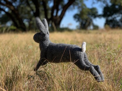 ♥ Knit mostly in the round and all in one piece, this rabbit is in running/hopping position