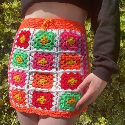 Each square is joined as you go, so there is no seaming up afterwards. The waist has a drawstring, making it easily adjustable.