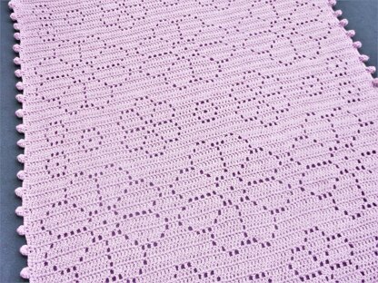 Meadow baby blanket This blanket is great to keep the baby warm in the crib, car seat or just to snuggle. You can make it with your yarn of choice in a solid color. It is suitable for advanced beginners. You can follow the row-by-row instructions, or you can simply follow the chart if you’re familiar with charts.