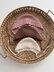 Bonnet is started working from the back in the round and then continued back and forth. Edging and ties are completed after bonnet is finished.