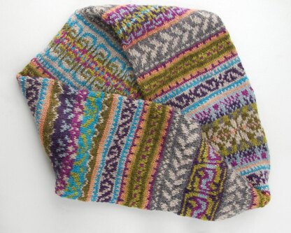 This is a pattern for a cowl worked in the round and using the stranded knitting technique.