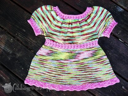 Like the sweet girl it's name after, the Meadow Lily top is perfectly girly but not too frilly for some real playing. It is worked seamlessly in the round from the top down, with a full bodice, fitted empire waist, A-line skirt, and puffed sleeves. The pattern is written for a tunic-length top but can easily be lengthened into a dress. Options for the bottom hem include either crocheted edging or a simple lace edging, and the instructions for the sleeves include short or long sleeves.