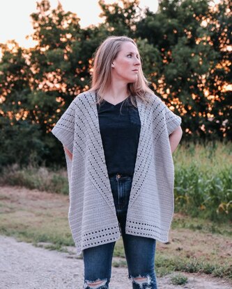 The Meadow Mist Poncho is a simple pattern that is seamless in design, but highlighted by a striking, yet minimal, modern chevron design created using offset chain spaces. The post stitches along the edge of the chevron design and the X stitches along the bottom help give the design a finished appearance while maintaining its modern minimalism. This flowy piece is easy to dress up or down, and is perfect for just about any time of the year. It's cool for summer paired with shorts, a tank, and strappy sandals, but easy to layer with a long-sleeved tee, drapey scarf, and riding boots for a cool Fall day.