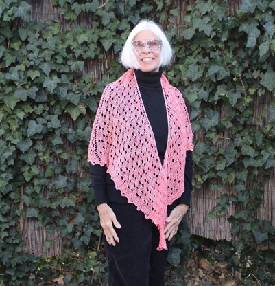 Meadowood Gulch is a timeless curved triangle shawl with lace down the center and edges. The pattern is written and charted out.
