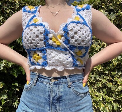 The squares are joined as you go, so there’s no seaming afterwards. The wrap style means that sizing is adjustable. This pattern is great for using up yarn scraps.