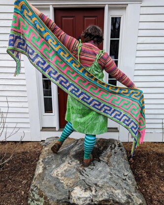 My downloadable crochet pattern includes all the information you need to make your own Meandros Stripe Shawl. With written English instructions, ample Charts, Diagrams and Photos for support.