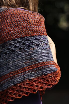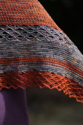 The name was inspired by a speckled yarn in a colourway called Salty Tales, and the complementing rusty orange semi-solid. The eyelet stitch pattern is reminiscent of scales to me, and as the netting knit up, it seemed to catch a rather rusty mermaid.