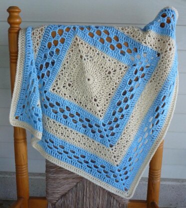 A light weight baby blanket, crocheted in 2 colors to highlight the symmetry of the concentric squares; using easy crochet stitches, and only 1 ball (100g/ 270yds) of each color.