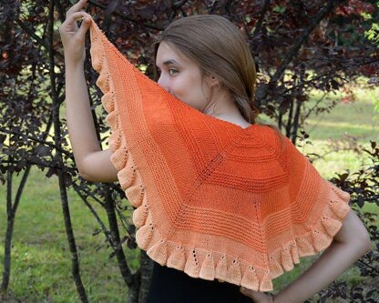 Wear this versatile shawl as a wrap for those cool evenings, a topper for a sundress, a chic scarf or even tied around the hips. It’s knit from the center back down with a single 100-gram skein of luxury sock yarn. The unusual shaping of this modified triangular shawl helps it stay on the shoulders better. Suitable for the Advanced Beginner to Intermediate knitter.