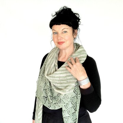 Combine classic stripes with lace for a relaxed shawl to enjoy year-round. Asymmetrical triangular shaping is easy to wear and so satisfying to knit. Choose boldly contrasting yarns or knit your Melaleuca up with a more subtle variegated yarn and solid colour combination as I did with mine. I loved knitting this as I moved to my new coastal home. The play of colours in this shawl echoes the dappling light in the lovely Melaleuca trees prevalent along the coast.