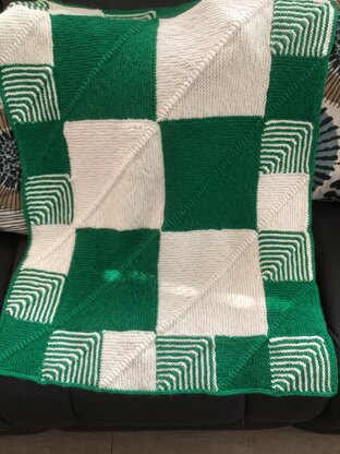 Construction: This blanket is constructed seamless and modularly, knitting each square onto those already complete.
