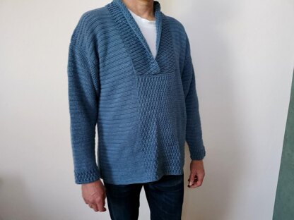 This cool sweater for men has a beautiful texture on the front, on the cuffs and on the shawl collar. It can be made in 6 sizes and is made with basic stitches, but also with the Alpine stitch for the textured parts. I have added detailed instructions with photos in the pattern on how to crochet this Alpine stitch. The front and the back of the sweater are worked separately. Then we crochet 2 sleeves and the shawl collar. We close the shoulders seams and sew or crochet the shawl collar and the sleeves to the sweater and close the sides of the sweater.