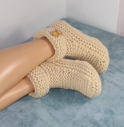 This is my Mens Super Chunky 2 Button Cuff Slipper Boots CIRCULAR knitting pattern. These fabulous slipper boots are quick and easy to make and because they are knit in the round all you have to do to make up is sew in your loose ends. The knitting pattern covers 3 mens sizes S (9-10 inches),M (10-11 inches) and L (11-12 inches) and there are numerous step by step photos to help you throughout. They are knit on circular needles in any super chunky yarn of your choice and there are also instructions to make the sole non slip. With worldwide high energy prices make someones feet lovely and warm this winter by making them a pair.