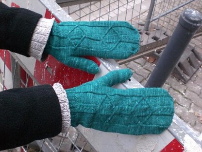 These mitts feature a cable pattern inspired by the “Meridian Socks” (pattern also available). They are worked from the top down, this way you can easily adapt the length to your needs. Also you can choose between the full mittens and the fingerless version.