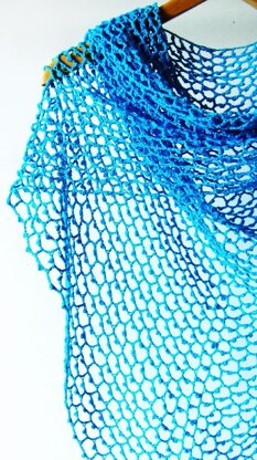 Easy one-skein shawl or beach accessory - it could be worn as a cover or pareo, you can wrap it around the hips - size gives plenty options to wear. Use white silk and decorate picots with beads - you will get the weightless bridal shawl.