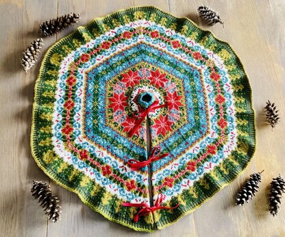 This Christmas Tree Skirt features a Fair Isle colorwork pattern knitted in worsted weight yarn. Using various amounts of six colors of yarn this is a great stash-busting project that can be easily customized by changing colors. Knitted seamlessly, in the round, Steeking is used to create an opening at the back of the skirt. This heirloom piece will be treasured by many generations, and would add a festive element to any Christmas decor.